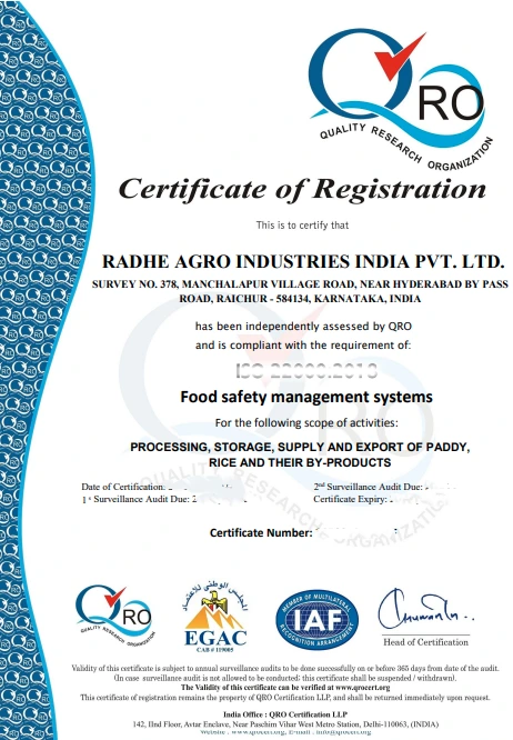 Our commitment to producing high-quality rice is validated by ISO 22000:2005 certification.